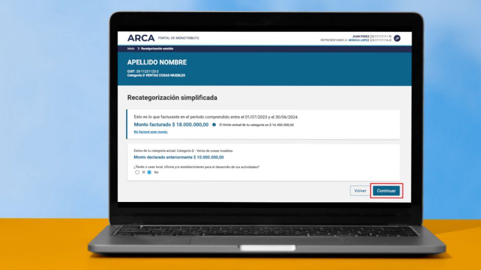 ARCA implementó una recategorización simplificada que permite hacer el trámite desde la web del Monotributo o la app ARCA Móvil. Está disponible para monotributistas con 12 meses completos en el régimen y puntos de venta de facturación electrónica. El sistema muestra automáticamente la facturación anual registrada; si es correcta, el contribuyente puede confirmarla con un clic y, si necesita modificarla, puede editar los valores.